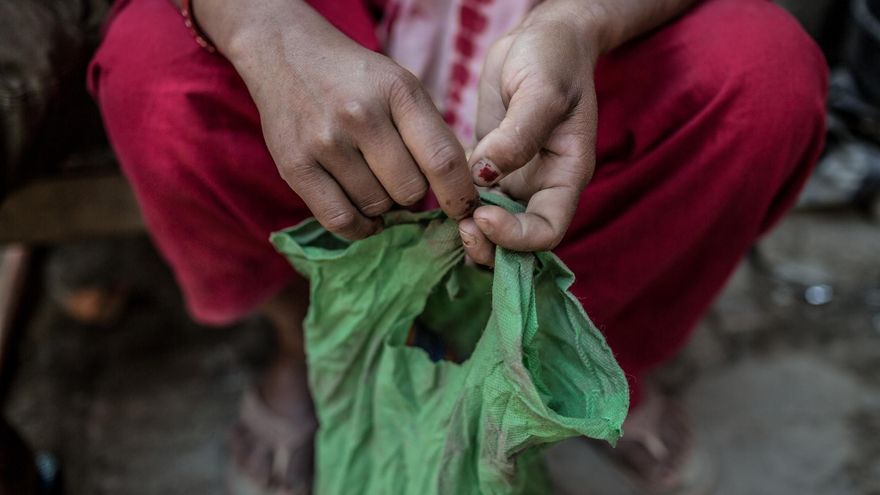 Junto a Ramesh, la pareja corre las cortinas y entre los escombros encuentra una bolsa de plástico verde. Es lo único intacto que queda, todo el resto es una masa de hierros, ladrillos y restos de lo que fue una vida.