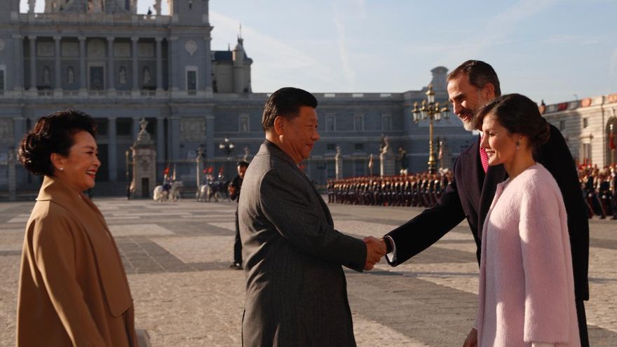 El mismo martes fue recibido por los reyes y el ministro de Exteriores, Josep Borrell, en el Palacio de la Zarzuela, donde también se celebró una cena del más alto nivel con el dirigente chino. Este miércoles, Xi Jinping ha vuelto a ser recibido por los reyes en el Palacio Real bajo salvas de 21 cañonazos y con honores de la Guardia Real. Por la noche, el rey Felipe VI y la reina Letizia acogerán una nueva “cena de gala” con el presidente chino y su esposa.