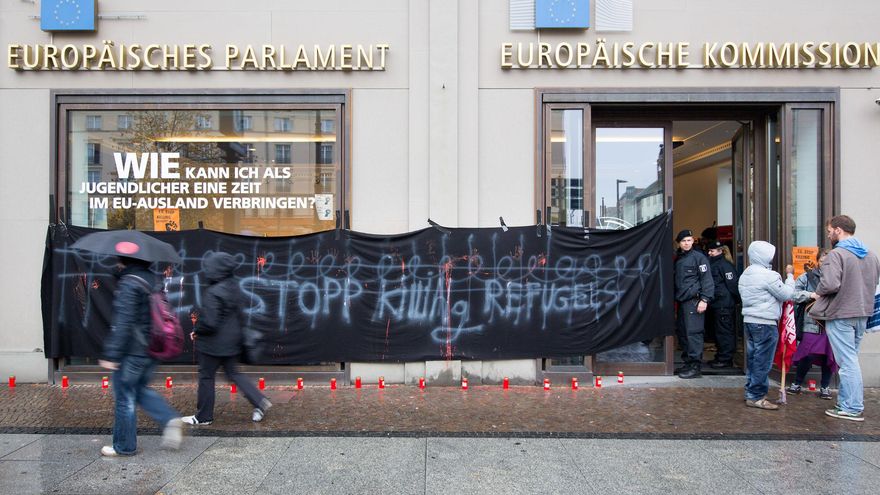 Unos pocos metros más allá de la Puerta de Brandeburgo se encuentra la representación de la Unión Europea en Berlín. Allí se desplazó ayer otro grupo de refugiados para realizar una ocupación simbólica e intentar hablar con alguna autoridad comunitaria. Querían transmitirle un mensaje de condena por la catástrofe de Lampedusa. “Stop killing refugees”, se leía en una pancarta que colgaron en la fachada del edificio. A las cinco de la tarde abandonaron el lugar, como les habían pedido los trabajadores del organismo. Por toda respuesta han conocido hoy la detención en Hamburgo de varios refugiados que llegaron a través de Lampedusa.