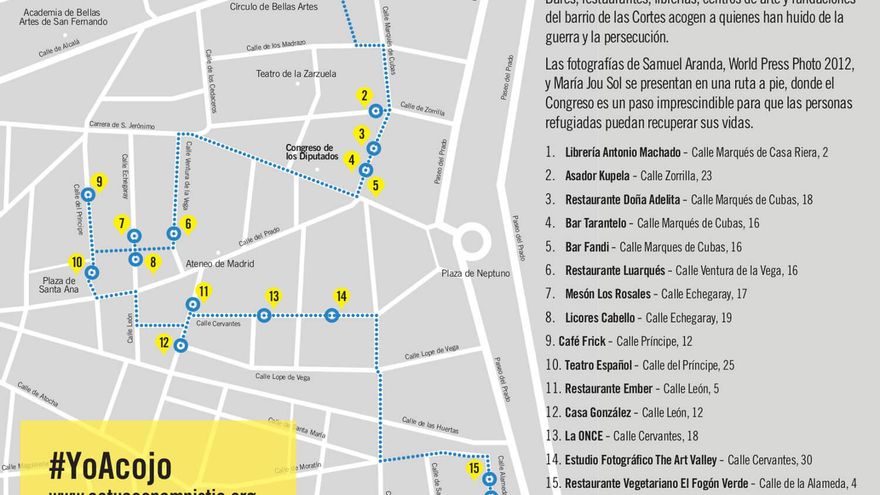 Un total de 18 locales, entre ellos el Teatro Español, componen la ruta fotográfica que podrá visitarse hasta el próximo 5 de octubre. La muestra cuenta con imágenes de Samuel Aranda, World Press Photo 2012, y María Jou Sol, que han retratado los rostros de quienes huyen de la guerra y la persecución hacia Europa.