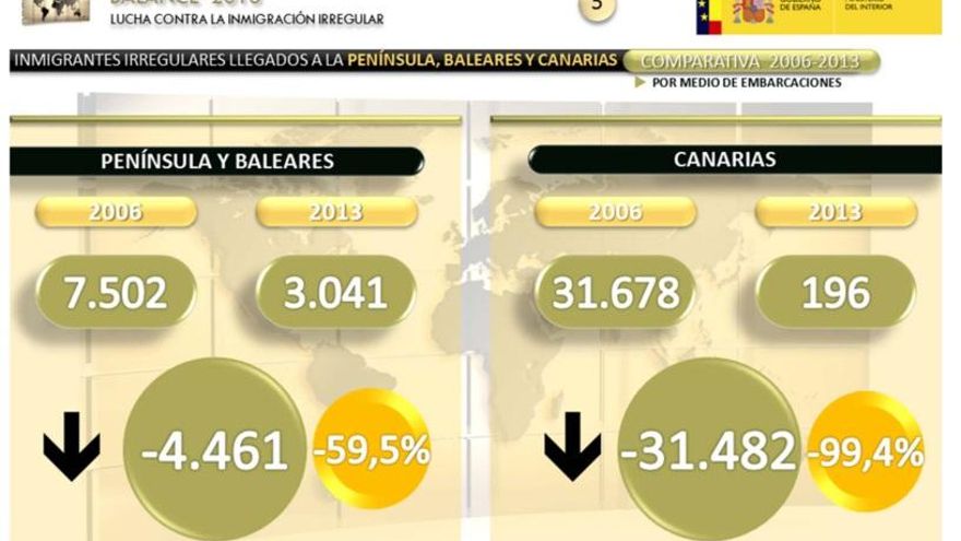 - “Si en 2012 la reducción de las llegadas fue de un 30%, en 2013 se ha conseguido reducir un 15% más”.