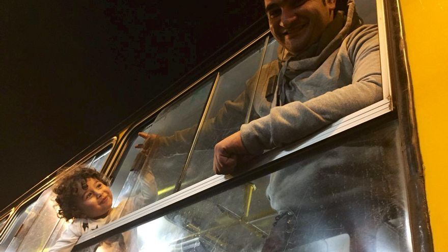 Bahira entra en uno de los primeros buses junto con su familia. Se acomodan en los asientos y los niños, muy pequeños aún, se duermen casi de inmediato. En cuestión de minutos el campamento de la estación de tren queda casi vacío, con restos de comida y pertenencias que ya no caben en las maletas. Incluso los más desconfiados terminan subiéndose a los autocares.