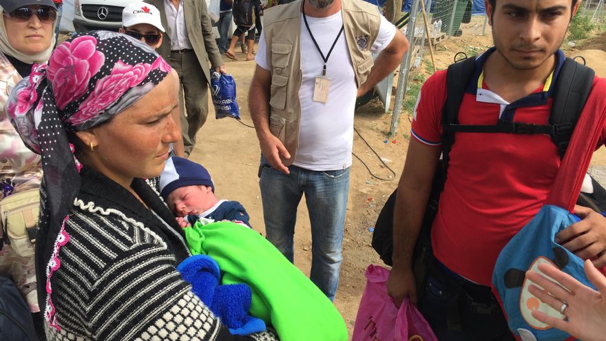 Una cara arrugada asoma bajo un gorro grueso. Las mejillas son de un rosa encendido, reventadas por el calor y aún doloridas del parto. Shaheen nació hace cinco días. Su madre, Midgin, le parió en mitad del mar, en la barca que les trasladaba de noche a lo largo de la enésima etapa de su éxodo. Ahora completan andando, como si hiciera un año de aquello, la distancia que separa Macedonia de Serbia, junto a las vías del tren en Tabanovce.