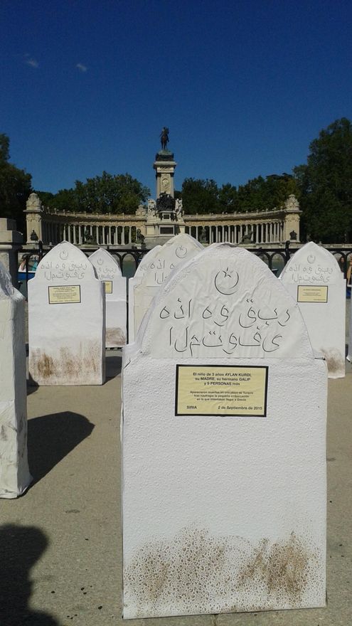 En esta particular orilla que recuerda a la del mar Mediterráneo, esa que tantas vidas han soñado con alcanzar para buscar refugio en Europa, también se recreaba otra dura realidad de las trágicas consecuencias que generan la falta de vías legales para acceder a países donde estar a salvo. Allí, se levantaba la recreación de 27 tumbas con la intención de recordar a las víctimas de las fronteras que están marcando la historia reciente de Europa y que empuja hacia el abismo la defensa de los derechos humanos. En ellas se podían leer los nombres del pequeño Aylan Kurdi, de Samba Martine, que murió en el Centro de Internamiento de Extranjeros de Aluche, de Haifa o Samira que huyeron del horror en Siria y perdieron la vida tras un naufragio en el Egeo o de Armad y Douda, víctimas de la tragedia del Tarajal en febrero de 2014.