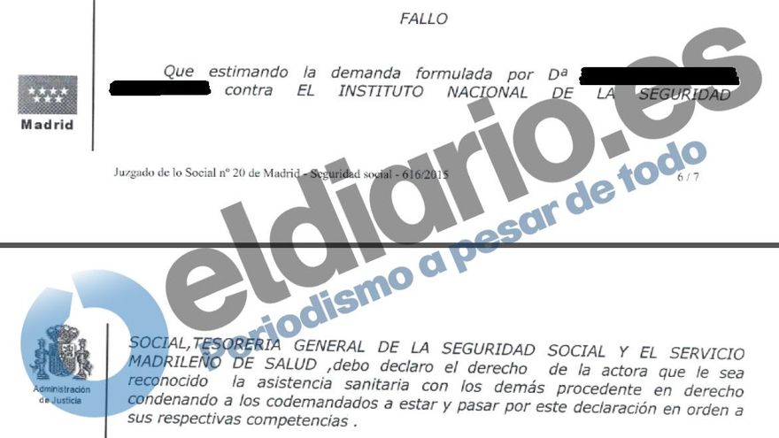 Así lo ha manifestado una magistrada del juzgado de lo Social número 20 de Madrid a propósito de Estela y “declara el derecho de la actora [a] que le sea reconocido la asistencia sanitaria”. En el texto, la jueza expone que “en atención a la normativa expuesta la demandante tiene la condición de asegurada” al ser titular de una autorización de residencia “que se encontraba vigente en el momento en que formuló solicitud de asistencia sanitaria”.