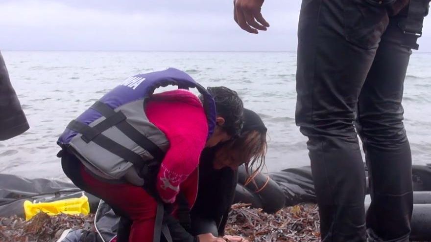 Las imágenes del momento en que pisan tierra en este vídeo publicado por eldiario.es no dejan indiferentes: claros síntomas de hipotermia, tiritonas, desmayos, llantos, niños consolando a sus padres y madres que sollozan tras verse a salvo...