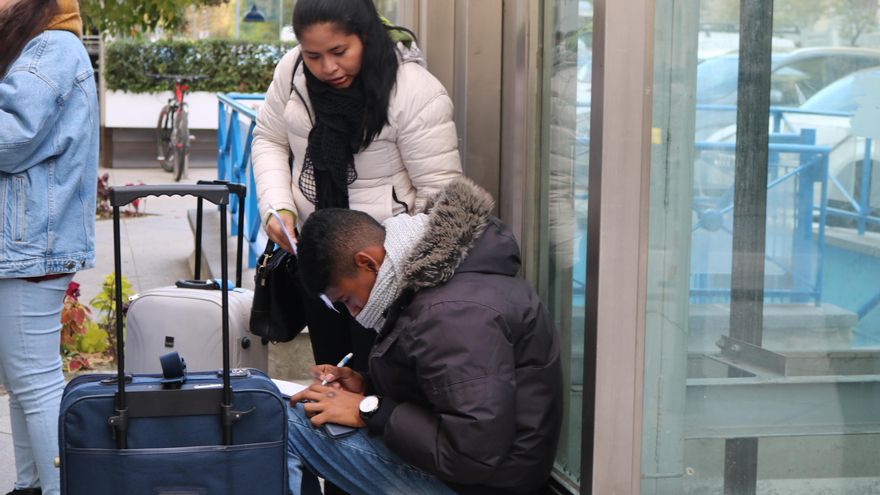 John Alexander, que se define como líder social en Colombia, estaba entre los allí presentes. Llegó a España el pasado 6 de noviembre, y la Administración no le ha dado cita hasta el día 22 para iniciar un proceso que, denuncian, se puede alargar meses, dejándolos en una situación de desprotección. “El Samur no nos ofrece ninguna ayuda, no nos resuelve nada. Nos dicen que, si no podemos pagar un hostal, regresemos a nuestro país. Esa no es la idea, venimos por una serie de dificultades, si salimos de allí es por algo”, sostiene. Cuenta que fue víctima de la delincuencia organizada y la guerrilla, y tuvo que salir escoltado hasta el aeropuerto, dejando atrás a su familia.