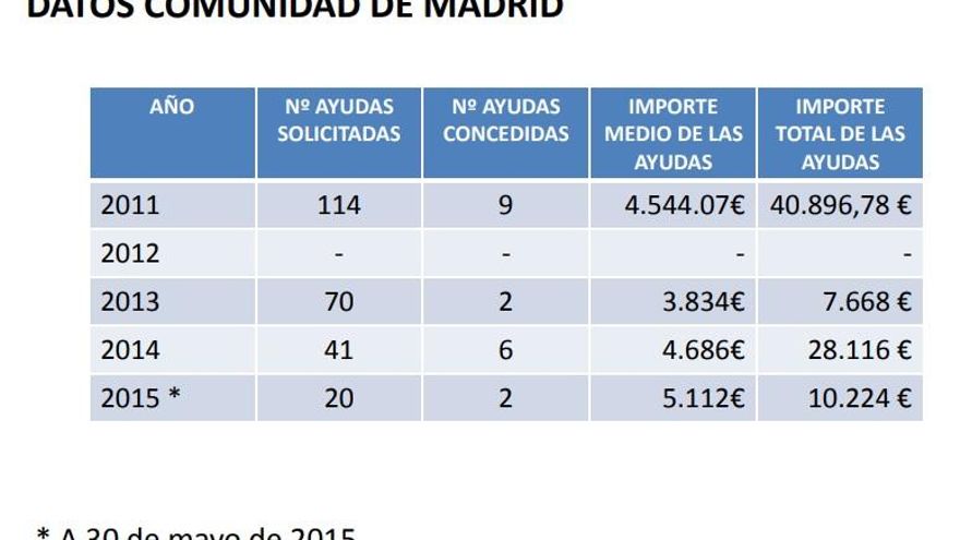 En la Comunidad de Madrid de las 225 solicitudes que se presentaron a lo largo de cuatro años, desde 2011 hasta 2014, estas sólo fueron concedidas en 17 ocasiones