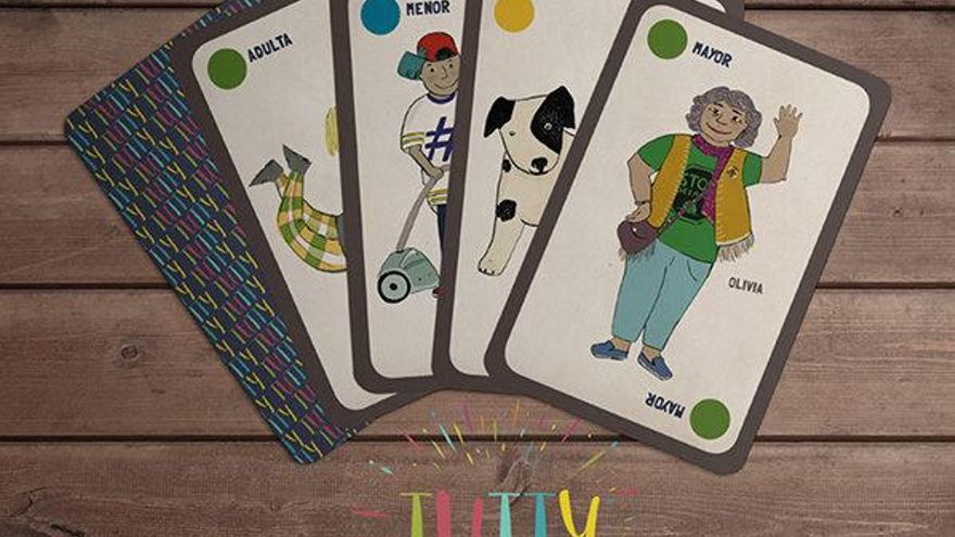 ¿Recuerdas la clásica baraja de cartas de familias del mundo? La idea de Tutty es la misma: completar una familia. Sin embargo, lejos de tirar de estereotipos sobre otras culturas, este juego trata de reflejar la diversidad que hay mucho más cerca, en las calles españolas, con 28 protagonistas que viven situaciones cotidianas. Tampoco hay un solo modelo de relaciones familiares: se pueden formar familias con dos madres, dos padres, gente que vive en comunidad, que adopta o acoge a menores, también a mayores. Cada familia tiene que tener como mínimo seis integrantes, por lo que las combinaciones son múltiples.