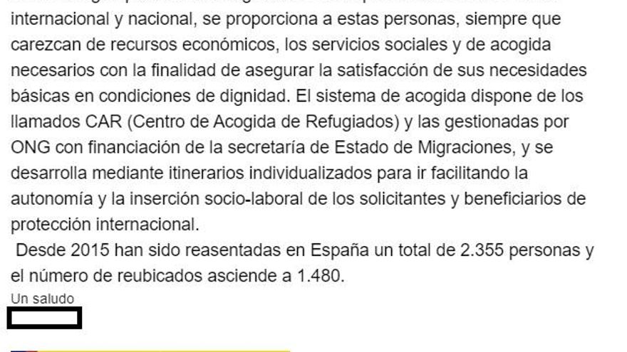 Además, desde la cartera indican que “no se otorgan pisos a los refugiados”. Eso sí, señalan que “sí se les proporciona a estas personas (siempre que carezcan de recursos económicos) los servicios sociales y de acogida necesarios con la finalidad de asegurar la satisfacción de sus necesidades básicas en condiciones de dignidad”. “El sistema de acogida dispone de los llamados CAR (Centro de Acogida de Refugiados) y las [plazas] gestionadas por ONG con financiación de la secretaría de Estado de Migraciones”.