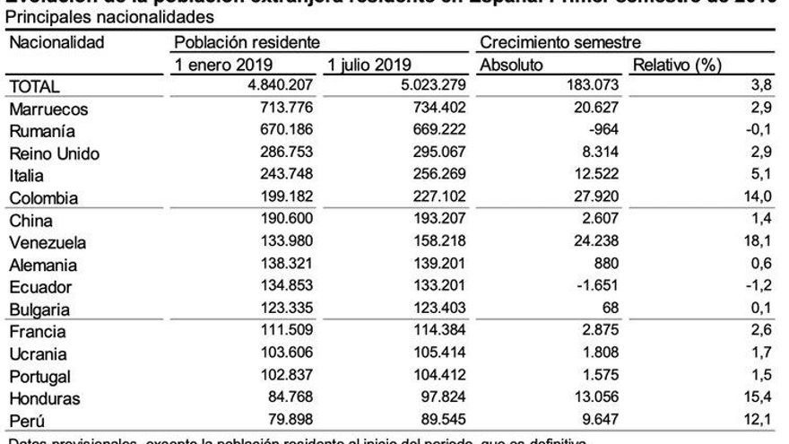 Las comunidades de Marruecos y Rumanía siguen siendo las más numerosas dentro del colectivo inmigrante. Los mayores incrementos en términos absolutos se produjeron entre la población colombiana (27.920), venezolana (24.238) y marroquí (20.627), con un descenso en la de Ecuador (-1.651) y Rumanía (-964).