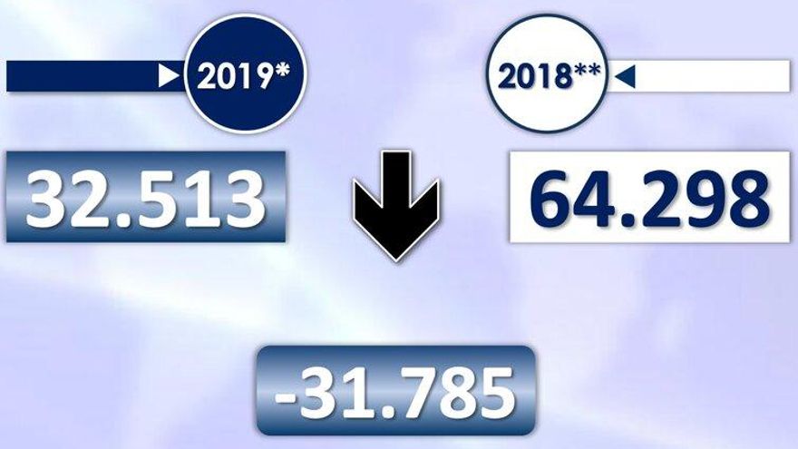 Además, los migrantes que entraron por Frontera Sur por vía marítima o terrestre en 2019 fue de 32.513, una reducción casi de un 50% con respecto a 2018.