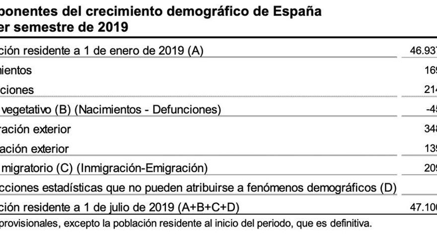 Por otra parte, seguimos la tendencia de envejecimiento de nuestra población, con un saldo vegetativo negativo de 45.002 personas, es decir, el número de defunciones supera ampliamente la tasa de nacimientos. El crecimiento poblacional se debió al incremento de nacionalidad extranjera, dado que la sociedad española se redujo.