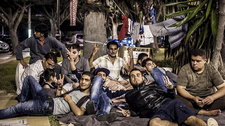 Uno de los chavales que duerme estos días tirado en los jardines de la Plaza de España de Melilla es Adnaan. Este joven sirio, de 20 años de edad, huyó hace poco más de seis meses de la masacre humanitaria que acontece en su país. Dice haber estado en medio de tiroteos y haberse librado por poco de ser alcanzado por una bala.Llegó a Melilla hace dos semanas y desde entonces duerme en la calle: “Ya no puedo más. Necesito comer bien, ducharme, afeitarme y poder pensar en otra cosa”, comenta compungido mientras mira al vacío con unos ojos verdes y profundos que dan cuenta del dolor y de la desesperación.