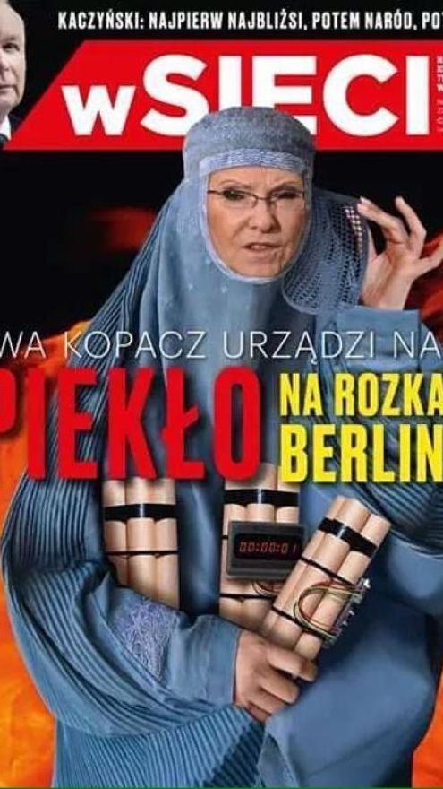 En ella aparece la entonces primera ministra polaca Ewa Kopacz portando un velo islámico y cargada de explosivos. El titular de la portada hacía referencia a la posible aprobación del plan de reubicación de refugiados de Grecia e Italia a otros estados miembros, entre ellos Polonia: “Ewa Kopacz nos organiza infierno a instancias de Berlín». La portada conllevó una demanda por parte de Kopacz demanda cotra el magazine por ver menospreciado ”su honor y dignidad“.