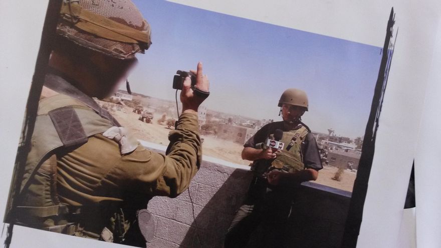 Lo máximo que permitieron fue que entrara algún corresponsal pero empotrado con las tropas, según afirman desde Breaking the Silence. Para demostrarlo muestran una fotografía tomada el pasado verano en la que se puede ver a un reportero del Canal 10, ataviado con el típico casco antifragmentación y chaleco antibalas, pero con un soldado haciendo las funciones de cámara.