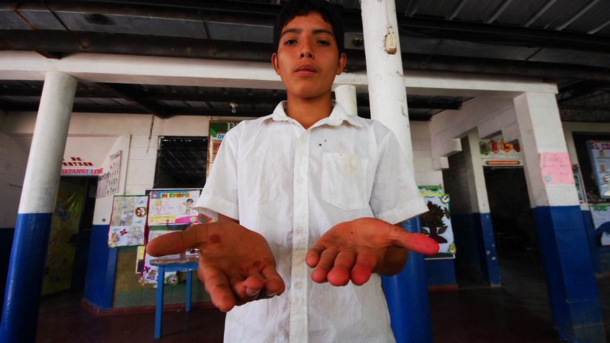 Cada día, antes de llegar a su colegio, prepara a Catherine, su hija de tres años y la lleva a la escuela infantil. “Intento hacer los deberes cuando ella duerme, aunque algunos días no puedo”, relata Blanca. Otros no puede acudir. Según describe, la niña cae enferma con frecuencia por una enfermedad pulmonar. No es la única, asegura. La comunidad que rodea al colegio está rodeada de cultivos de caña de azúcar. Las técnicas de explotación industrial son denunciadas por sus habitantes y ya ha habido varios casos de insuficiencia renal derivados de los químicos rociados en las plantaciones y por la quema de los cañales. Cada año, un avión fumiga los cultivos. El producto cae sobre los integrantes de la comunidad. “Los bebés se ven especialmente afectados. Mi niña tiene problemas en los riñones”, lamenta Blanca sobre un pupitre situado en el patio de su colegio.