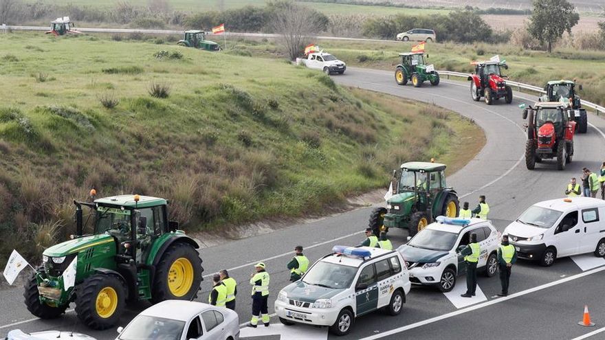 Continúan las movilizaciones de agricultores y ganaderos, esta vez en varios puntos de Andalucía, donde los trabajadores de este sector se suman a las manifestaciones iniciadas el pasado 28 de enero a nivel nacional. Los trabajadores de la provincia de Sevilla han convocado una movilización para exigir al Gobierno que acometa más reformas que la Ley de la cadena alimentaria, que se aprobará este martes en el Consejo de Ministros.