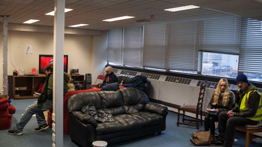 Michelo, un chileno entrado en la cincuentena, de frondoso pelo y barba oscuros, llevaba ya tres semanas alojado allí. Vive en Irlanda desde mediados de los años setenta, pero durante el último año, tras perder su trabajo y su casa, vaga de albergue en albergue. “El problema de esos sitios es que no son seguros. Son festivales de la droga donde la gente acude a comprar y a consumir”, se lamenta a la puerta del Apollo. En el interior del edificio, al que eldiario.es ha accedido, disponía de una habitación para él, de una zona común con televisor y billar, de cocina, lavandería y servicio médico. Es lo más parecido a una casa que ha conocido durante los últimos meses.