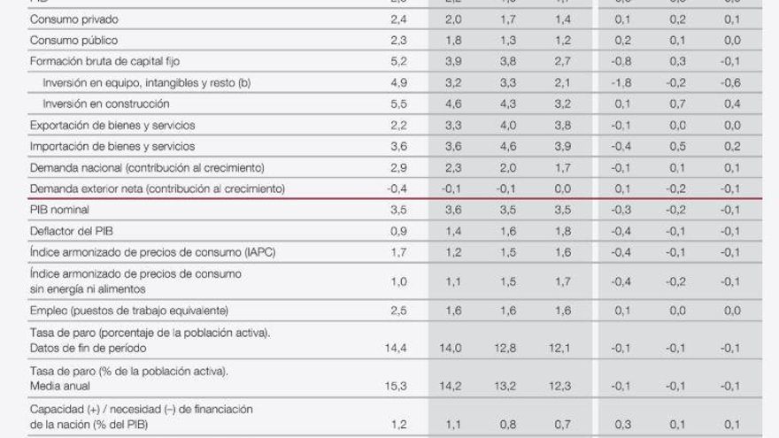 También ha señalado que aunque se mantiene la previsión de crecimiento para este año en el 2,2% en términos reales, la estimación para el PIB nominal se ha reducido en tres décimas, hasta el 3,6%, lo que repercute igualmente en el déficit público.