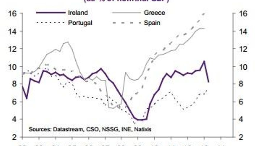 En un informe de finales de octubre, el banco de inversión francés Natixis (con prestigio en el sector), se pregunta: “¿Será España la China de Europa?”“¿Será España la China de Europa?”. El informe, emitido por lo que se puede llamar un agente del mercado, es demoledor. Asegura que los costes laborales de España permiten que se localicen muchas empresas en la península, ya que son mejores que los de Alemania o Francia. Sin embargo, el banco también recuerda que “la inversión en I+D es menor, así como las competencias de sus empleados”. La conclusión es que España será para Europa una factoría al estilo de lo que ha sido China para el mundo en los años noventa. En sucesivos informes, el banco muestra cómo los beneficios empresariales en España están subiendo a tasas muy superiores a las del resto de los países del euro, por supuesto incluidos Francia y Alemania.