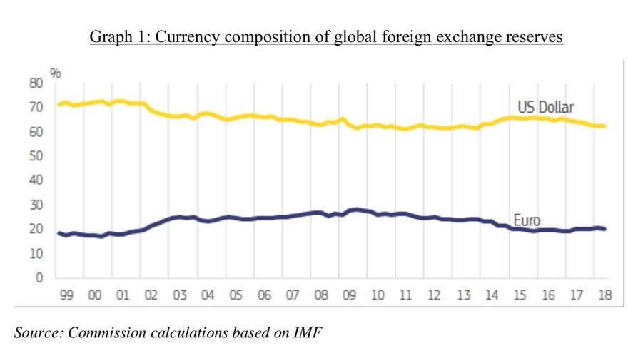 Reforzar el euro como moneda de uso en sectores económicos estratégicos clave cuando la moneda única cumple 20 años de vida. Bruselas teme la dependencia del dólar para comprar gas, petróleo y otros combustibles. Y se lamenta de que un entorno económico tan importante como la eurozona no pueda imponer su propia moneda en transacciones clave, incluso entre países del euro.
