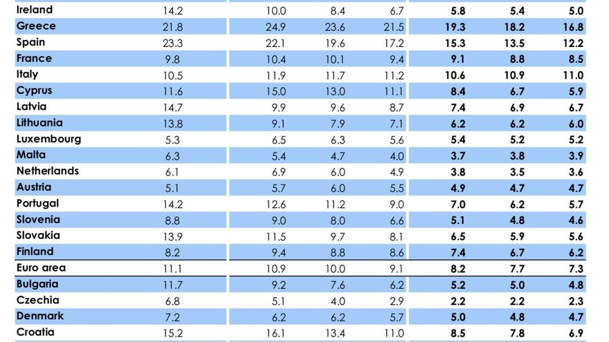 En el caso de España, sigue creciendo un poco por encima de la media europea, sigue con tasas de paro que casi duplican la media europea y sigue recortando deuda a un ritmo satisfactorio para las autoridades comunitarias, que siguen preocupadas con el impacto de la subida del salario mínimo sobre la creación de empleo, si bien eluden cifrarlo.