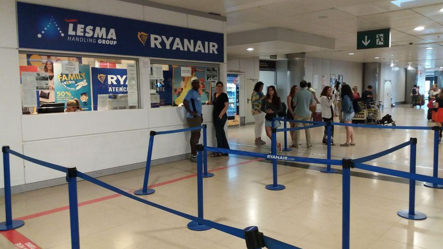 La zona de facturación de Ryanair parece la de un día normal. La huelga de tripulantes de cabina no ha variado en apariencia el transcurso de lo que parece una jornada más. Pero las colas son mucho más cortas que otros días, y el descontento se nota en los que esperan en los mostradores de Atención al cliente. Algunos de los pasajeros se han encontrado con que su vuelo ha sido cancelado esta misma mañana, mientras que otros temen perder su vuelo por la espera en las gestiones que no les solucionan en un mostrador y que les aseguran tienen que hacer en la fila de enfrente.