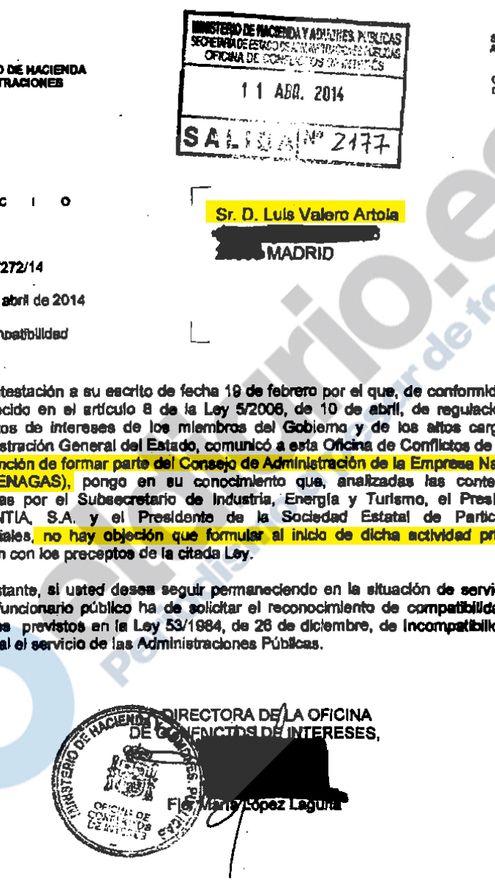 Luis Valero Artola, secretario general de Industria con José Manuel Soria, recibió el visto bueno para incorporarse como consejero en la energética Enagás. Antes de ocupar su puesto dentro de la cartera de Industria, Valero fue director general de la patronal de fabricantes de automóviles, Anfac.
