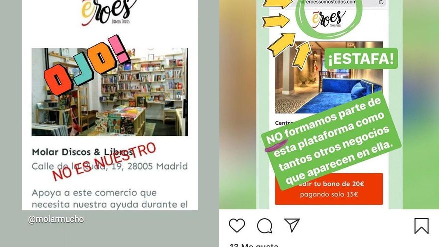 Comercios de Madrid avisan en Instagram de que no han dado su consentimiento para participar en 'Eroes Somos Todos'