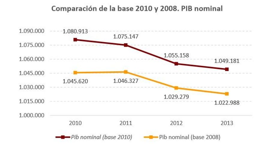 Las nuevas cifras varían de forma sutil también las tasas de crecimiento. En principio, el INE deja como estaba la caída de la economía en 2013, en la que se recortó el PIB un 1,2% tanto si se tiene en cuenta esta nueva contribución como sino. Pero para 2012 sí retoca la variación, al asegurar que el tropezón de la economía española no fue de un 1,6% como se había anunciado, sino de un 2,1%. Además, pasa de contabilizar como positiva la evolución del PIB en 2011 (cuando se dijo oficialmente que la economía había mejorado una décima) a un retroceso en aquel ejercicio del 0,6%. Esto elimina la idea de que hubo un año en positivo en medio de la recesión.