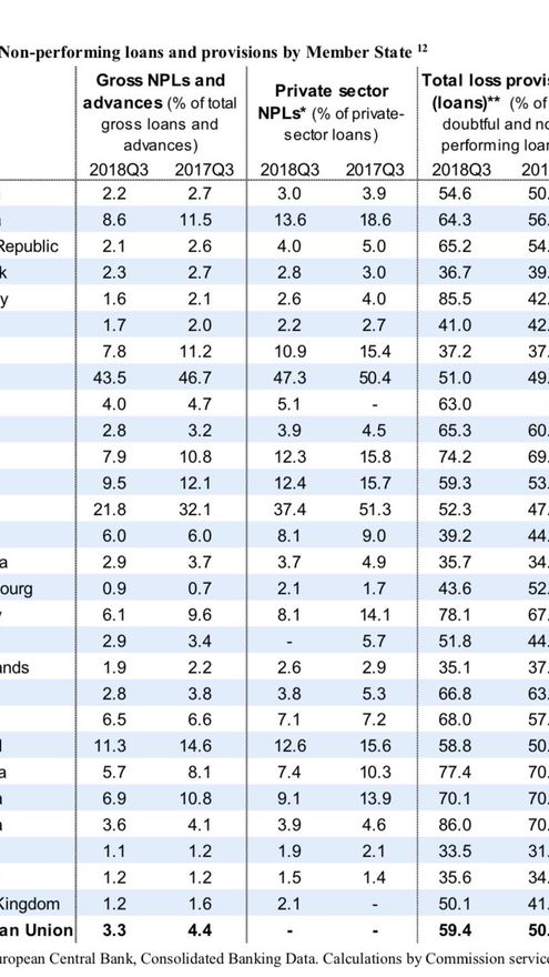 La Comisión Europea también constata que “se han realizado progresos significativos en la reducción de riesgos en la Unión Bancaria”. Según el último informe de situación de la Comisión, la tasa de préstamos dudosos para todos los bancos de la UE continúa disminuyendo y se redujo hasta el 3,3% en el tercer trimestre de 2018, continuando así su trayectoria descendente hacia niveles anteriores a la crisis. “De cara al futuro, es imperativo progresar con un sistema común de garantía de depósitos para la zona del euro”, insiste Bruselas.