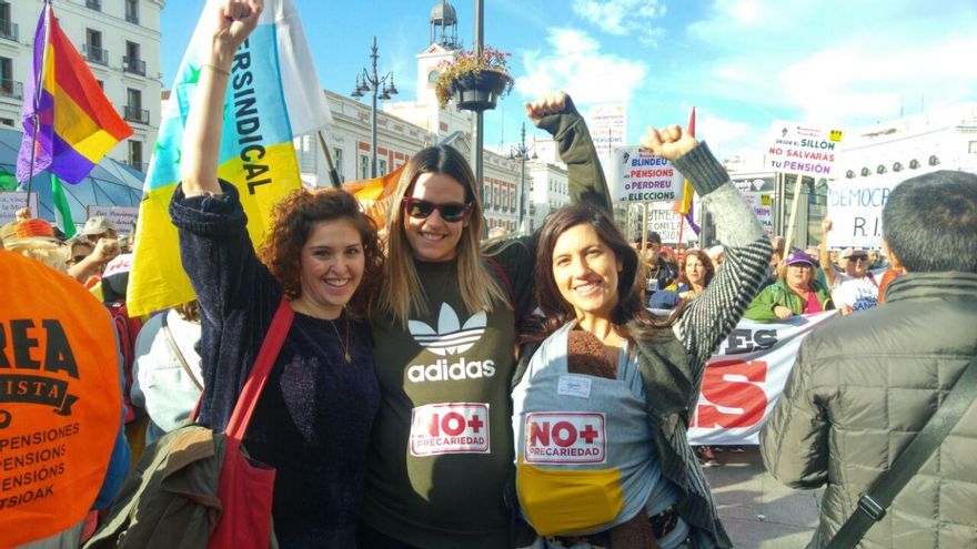 Las tres jóvenes tienen empleo, “pero temporal, vamos de seis meses en seis meses”, lamenta Alba. Advierten de que la calidad del empleo de los trabajadores de hoy es fundamental en la lucha de las pensiones. “A ver qué cotización tenemos”, teme Alba.