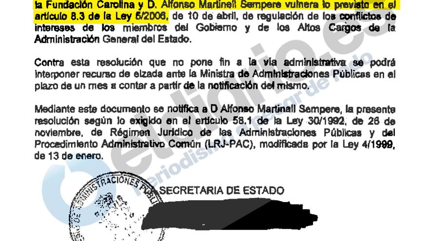 El Gobierno resolvió que ese contrato era incompatible ya que los ex altos cargos no pueden “celebrar contratos de asistencia técnica o de servicios con las Administraciones Públicas” durante los dos años siguientes a su cese. Sin embargo, la Oficina sí le autorizó a firmar un contrato para la producción de materiales didácticos con la AECID, la agencia de cooperación donde fue director general.