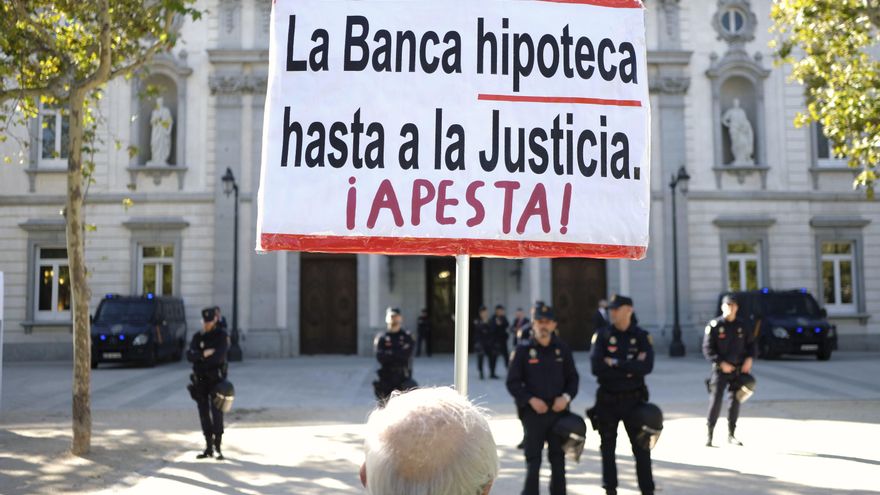 “El Tribunal Supremo está más interesado en defender a los grandes poderes de este país que al ciudadano”, sostiene Mercedes Revuelta, activista por el derecho a la vivienda y miembro de la PAH. Revuelta se muestra contraria a la notificación del tribunal, en la que deja sin efectos la sentencia hasta que los 31 magistrados del pleno de la sala decidan si deben ser los bancos o los clientes los que deban pagar dicho impuesto. “La repercusión económica y social que ha tenido esta sentencia la vemos en la calle hoy”, subraya Revuelta, mientras el colectivo grita “algo huele mal en ese Tribunal”.