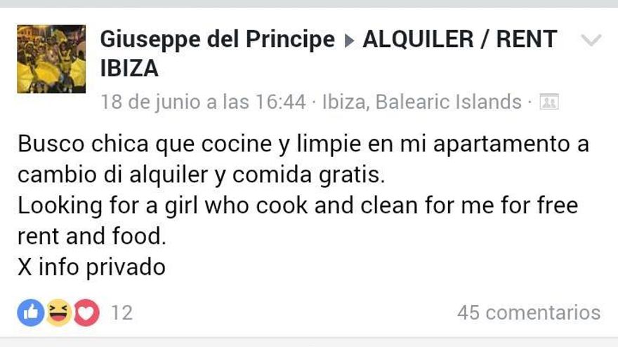 “Busco chica que cocine y limpie en mi apartamento a cambio de alquiler y comida gratis”. Es uno de los últimos anuncios publicados en Internet que revelan la situación que atraviesa la vivienda en Ibiza, donde en estos momentos llegan a hacinarse hasta diez personas por apartamento. En esos ‘pisos patera’, cada inquilino paga una media de entre 350 y 500 euros.