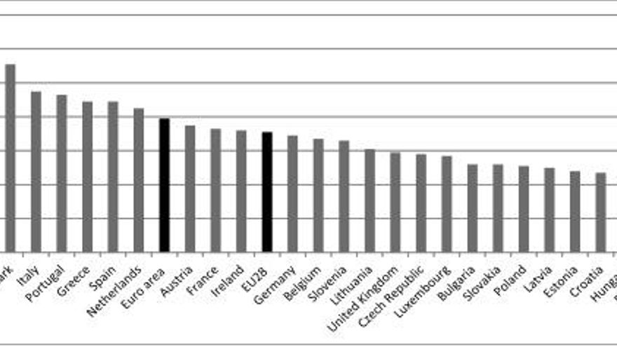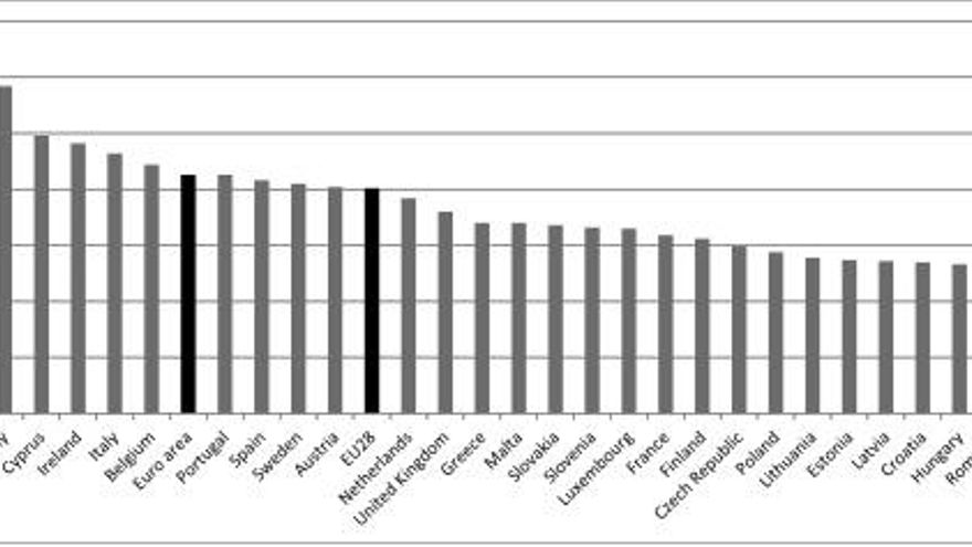 El precio más bajo fue en Bulgaria (€8,8 por 100 kWh), Rumania (€12,8) and Hungría (€13,3), y los más altos en Dinamarca (€29,4), Alemania (€29,2), Chipre (€24,8) e Irlanda (€24,1). El precio medio en la UE28 fue €20,1 por 100 kWh.