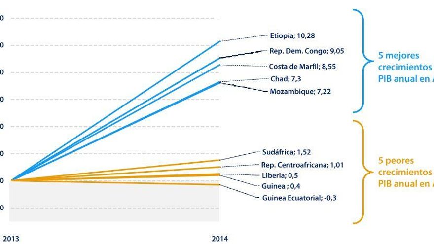 En el otro lado sorprende la presencia de Sudáfrica y cierra la lista de economías con crecimiento negativo Guinea Ecuatorial. El país de Mandela no encuentra su sitio tras la caída de los precios de las materias primas y sigue sin dar la tecla para reducir el desempleo que ya se sitúa en el 25%. El FMI achaca la contracción de la economía ecuatoguineana principalmente a la alta dependencia del crudo, que ahora vive sus tiempos más bajos.