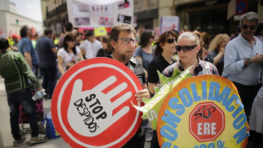 Olalla estaba afiliada hasta el año pasado, “lo estuve diez años, pero creo que los sindicatos no se están adaptando a las necesidades actuales del trabajo”. La mujer, ahora en paro, estuvo encadenando contratos temporales “cada tres meses” en el sector servicios. A unos metros, Yolanda (50 años) reivindica junto a su hija la labor de las organizaciones sindicales para recuperar las condiciones perdidas durante la crisis: “Venimos a hacernos notar, a hacer valer nuestros derechos”.