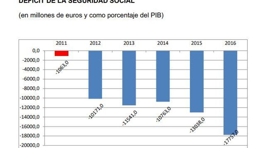 El PSOE asegura que otra consecuencia ha sido el aumento del déficit estructural de la Seguridad Social provocada por “la disminución de ingresos por la vía de cotizaciones sociales menores, dado el descenso general de salarios”.