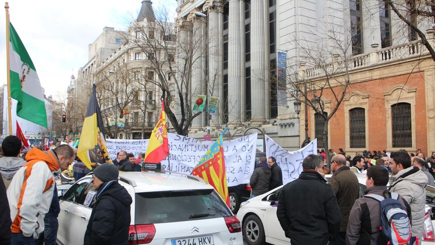 “No a la CNMC y sus multinacionales. Por el servicio público del taxi.” Bajo este lema el sector del taxi ha vuelto a las calles para protestar contra Competencia y las nuevas aplicaciones de transporte como Uber. Una nueva manifestación que se produce como contestación a la decisión de Competencia de pedir al ministerio de Fomento que modifique el reglamento de transporte aprobado hace unos meses donde se regula la concesión de licencias VTC que utilizan los conductores de plataformas como Uber o Cabify. El organismo considera que hay varios artículos que “obstaculizan la competencia efectiva en el transporte urbano de pasajeros en todo el territorio nacional, y reducen el bienestar general”.