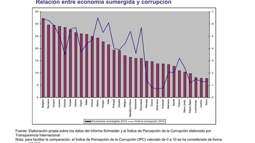 El presidente de la Fundación de Estudios Financieros (FEF), Juan Carlos Ureta, entidad de la cual son patronos algunas de las empresas más grandes de España, asegura que hay una correlación clara entre economía sumergida y corrupción. España se sitúa en ambas estadísticas –economía y corrupción– con datos similares y por encima de la media. Para el experto, luchar contra la economía sumergida supone en buena parte luchar contra la corrupción.