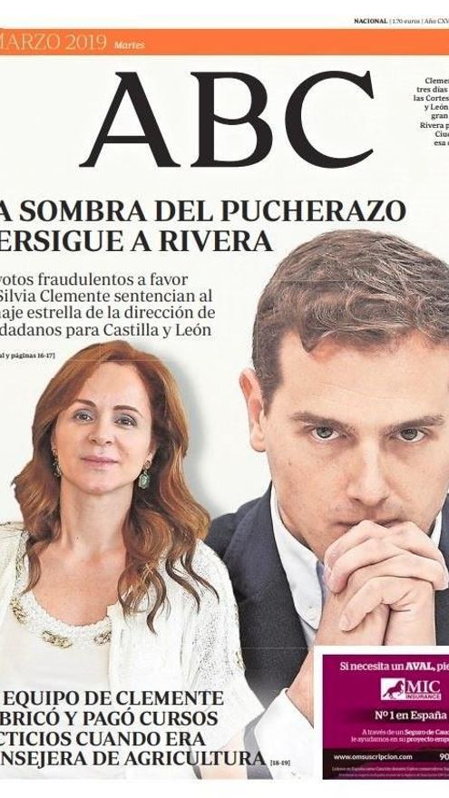 La noticia sobre la votación irregular de Silvia Clemente aparece en las portadas de todos los principales diarios nacionales editados en papel y en digital.
