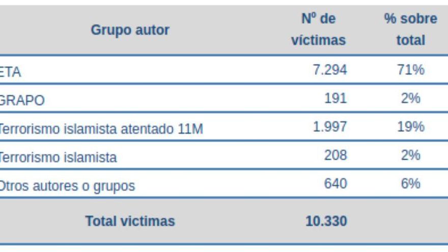 Desde Maldita.es. nos hemos puesto en contacto con el Ministerio del Interior para preguntar si tienen los datos de víctimas desagregados por grupos terroristas, pero nos han contestado que solo disponen de datos agrupados del número de víctimas por grupo en el período 1979-2018.