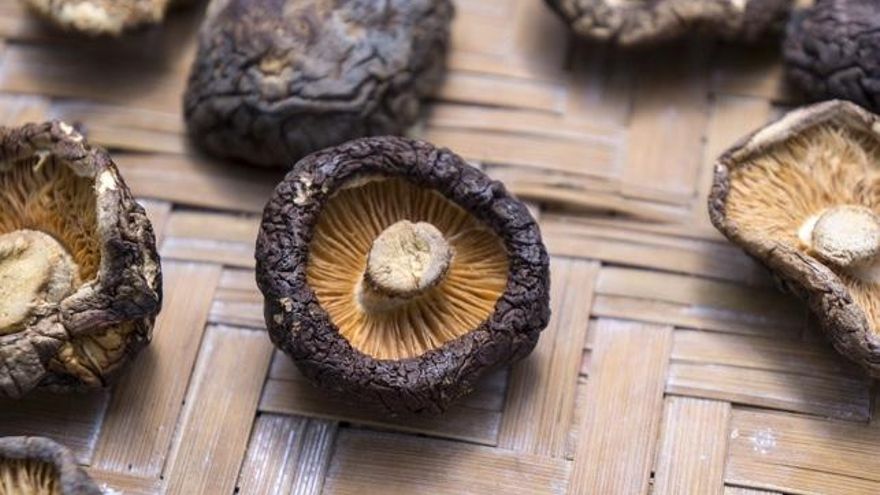 Se trata de la seta del hongo saprófito Lentinula edodes, que crece en los bosques de China, Japón, el norte de Taiwan y las Coreas. Lo hace sobre la madera, a la que descompone, y de ahí que se haya cultivado desde hace por lo menos 1.000 años, según se tiene noticia de las primeras anotaciones al respecto.