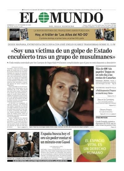 Trashorras en su recurso incluso pide perdón a las víctimas del atentado por “no haber prestado la colaboración necesaria” a la Justicia. En su confesión, tira por tierra toda la conspiración del 11-M: si el explosivo salió de Mina Conchita, si la compraron los islamistas, ¿qué más da que hubiese rastros de dinitrotolueno –probablemente por impurezas en la fabricación– en la Goma 2 ECO? La última declaración de Trashorras también pone en su sitio ciertas exclusivas de El Mundo. La hemeroteca siempre deja en evidencia las mentiras. Repasen, por ejemplo, las portadas del 3, 4 y 5 de septiembre de 2006, las declaraciones del mismo delincuente que ahora admite su papel en el atentado y que entonces confesaba al diario de Pedro J. Ramírez misteriosas conexiones con ETA y la Policía. Todos eran culpables. Todos, salvo él.