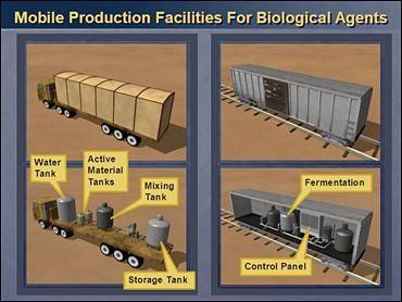 Iñigo Sáenz de Ugarte reflexiona en su blog sobre estos dibujos que presentó Colin Powell hace un año en la ONU durante su argumentación sobre el arsenal iraquí. Se encontraron. Pero no eran laboratorios prohibidos: servían para inflar con hidrógeno globos meteorológicos.