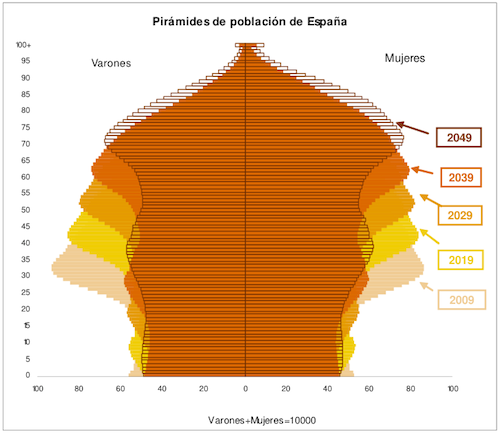 Ya es casualidad. Ayer el Instituto Nacional de Estadística difundió un informe donde alerta de que, en el 2049, habrá el doble de españoles con más de 64 años. Y hoy, un día después, el Gobierno presenta un duro plan de recorte que también pasa por retrasar la edad de jubilación. Miro los gráficos del informe del INE, esas amenazadoras pirámides de población a punto de colapsar, y me siento como si estuviese ante un psicólogo, respondiendo al test de Rorschach. ¿Qué ve usted aquí?, me pregunta el doctor. Y yo veo de lo más sorprendente que el INE no haya reparado hasta ayer en esos datos, que son públicos y salen del padrón. También veo incoherencia, cambio de discurso, un giro a la derecha, porque no se puede prometer que las pensiones van a subir, que la crisis no la van a pagar los más débiles, para después retrasar la edad de jubilación y cambiar el sistema de cómputo para que las pensiones sean más baratas. Y todo eso, a pesar de que España es de los países de la UE con menos gasto social.