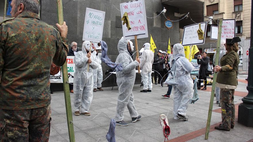 Ataúdes y pancartas frente a la Oficina de Extranjería en Bilbao
