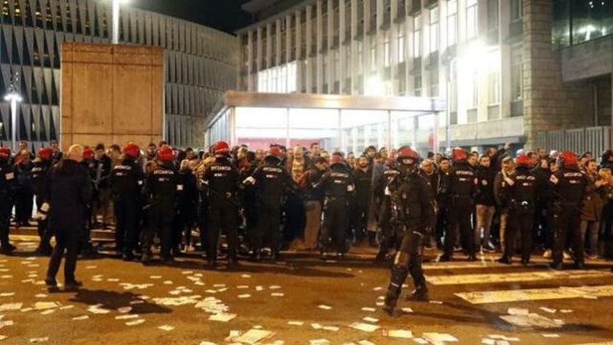 Mientras, en el barrio bilbaíno de Deusto, cerca de las 9 de la mañana, un grupo de encapuchados han tirado al suelo varios contenedores mientras que, por otra parte, desconocidos han realizado pintadas en autobuses de Bilbobus de apoyo a la huelga convocada este jueves.